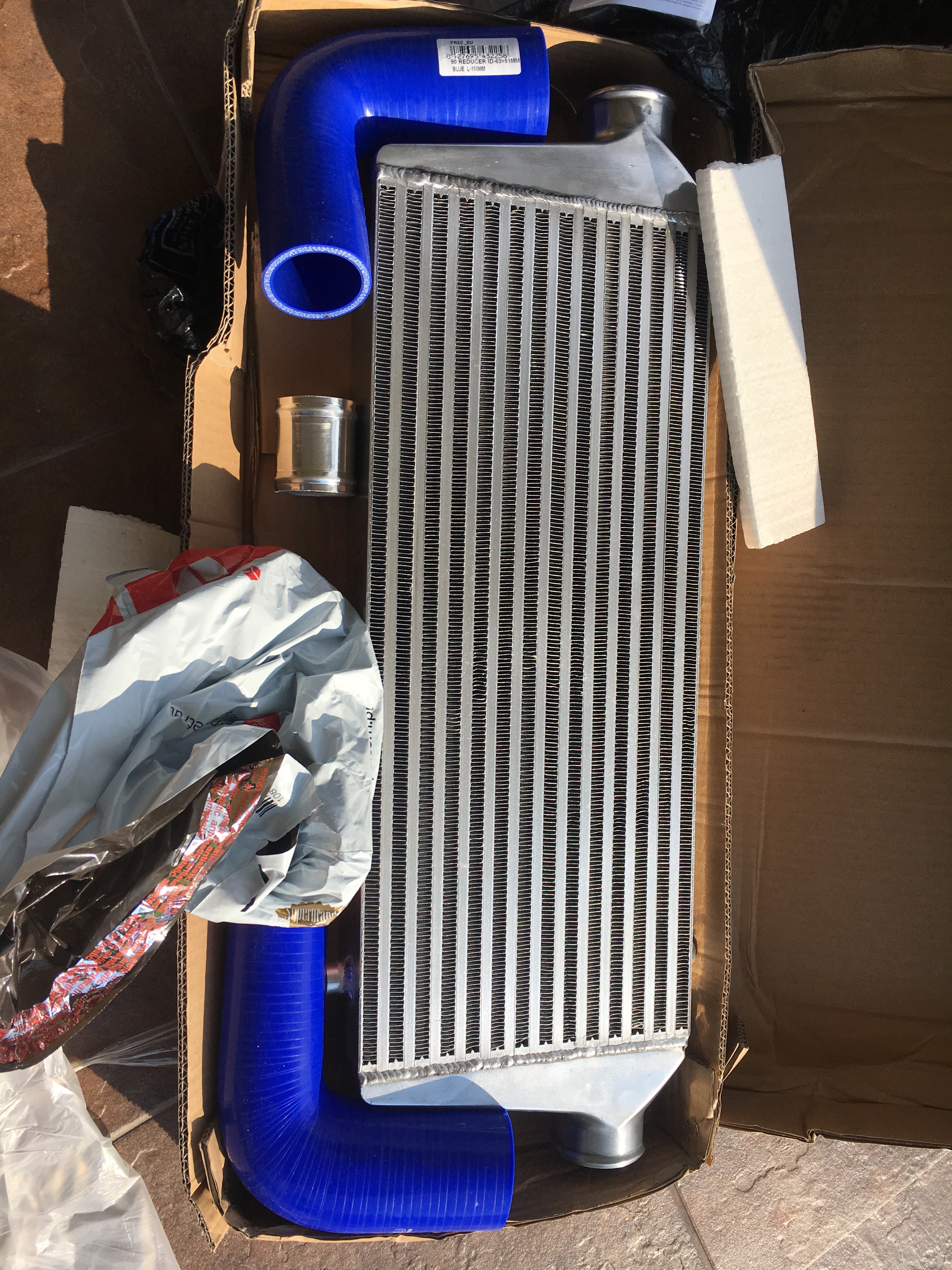 Zakupiłem sobie ostatnio fmic z fmic.pl – typowy zestawik pod saaba, z dwoma kolankami redukcyjnymi, kilkoma opaskami itd, i samym coolerem właściwym…