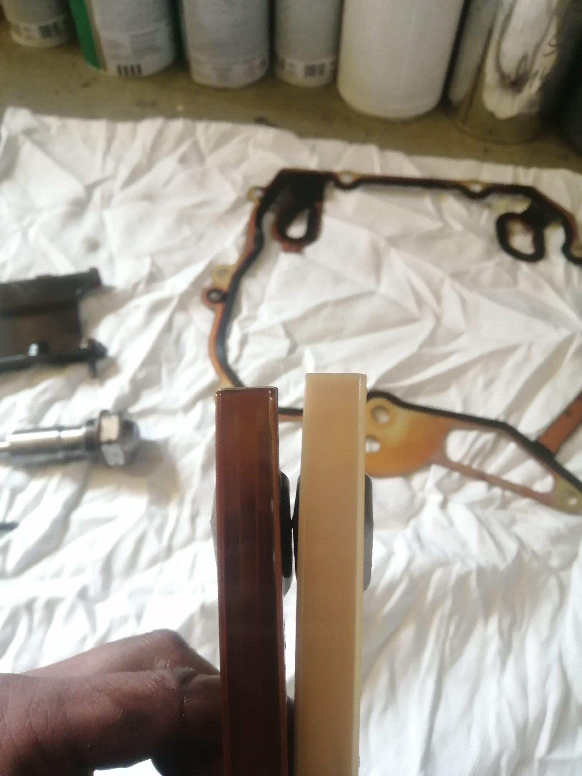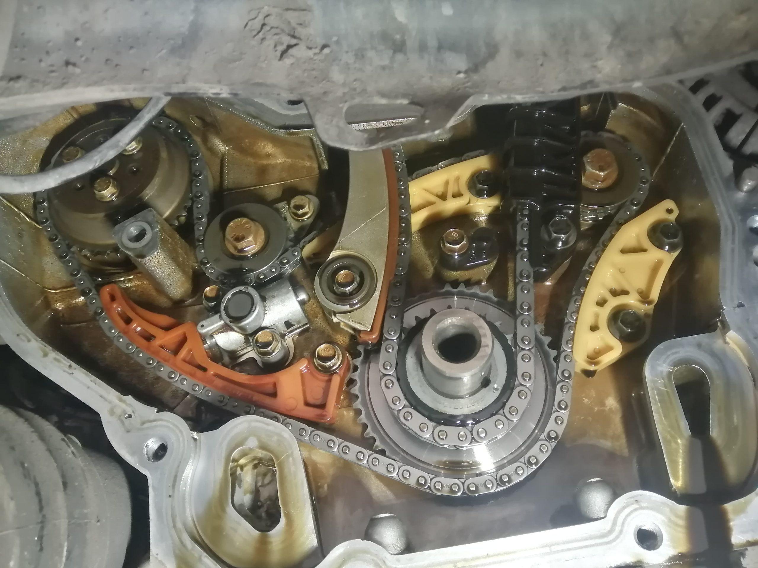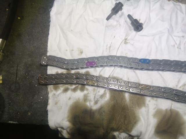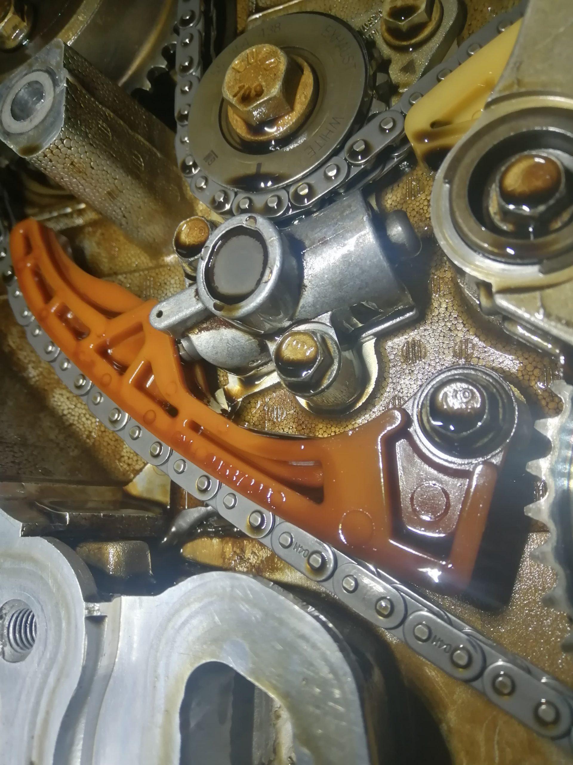 Fajnie? Tu dopiero zaczyna się cyrk, ponieważ niedługo później rozebraliśmy cały rozrząd główny i okazało się, że łańcuch rozrządu głównego zamiast mieć różowe i niebieskie oznaczenia ma je w kolorze żółtym… był prawdopodobnie jakimś tanim chinolem, ewentualnie pochodził z innego silnika! Nie muszę chyba dodawać do czego mogło to doprowadzić 🙂 Do tego nie wszystkie płozy zostały wymienione na nowe.. 🙂