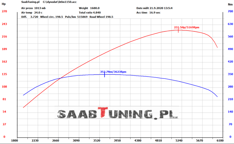 Reakcja na gaz zupełnie inna – w końcu doładowanie nie ucieka, mocy też przybyło bo różnica względem poprzedniego strojenia jest na poziomie 20KM 'górą’. Powinien trochę posłużyć.