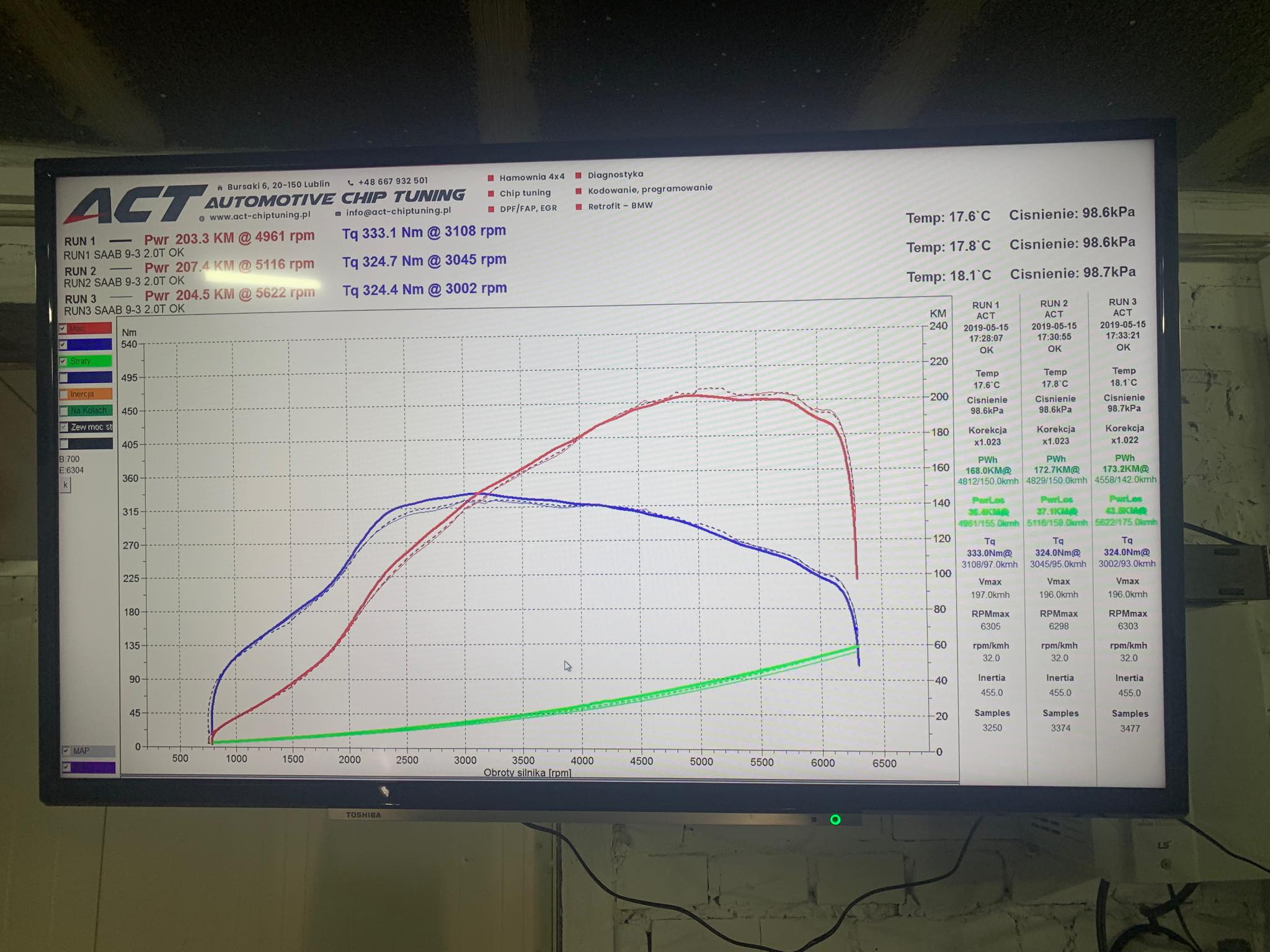 Saabik miał dziwne peaki doładowania np. 1,17bar przy 3200rpm, i bardziej wył niż jechał od początku do końca, wiecie… soft w stylu do 2.0t dopiszemy jeszcze 'di’ i zrobimy z niego diesla który kopie momentem – mocno acz krótko.