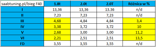 Praktyka pokazuje że w SAABach 9-3 czasem różnił się minimalnie 3ci bieg, znam wersje z ratio 4.68, 4.84 a nawet 5.16.