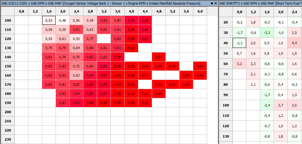 Wrzucam kilka zdjęć i screen z logowania napięcia sondy i korekt STFT – względem obrotów i ciśnienia w kolektorze.