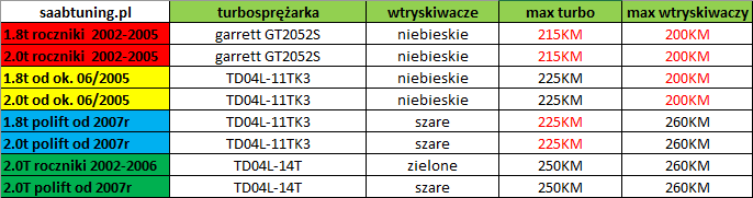- w każdej wersji niezależnie od rocznika występowała turbosprężarka TD04L-14T, której potencjał to (realne) ok. 250KM