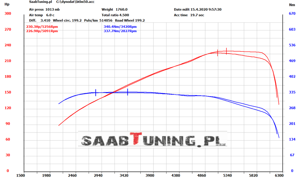 A tym razem 9-3 SS 1.8t modelowo 2006, a więc jeszcze przedlift, ale już z turbospreżarką TD04L-11Tk3, która ma wyraźnie większy potencjał niż GT2052S montowane w latach 2003-2006