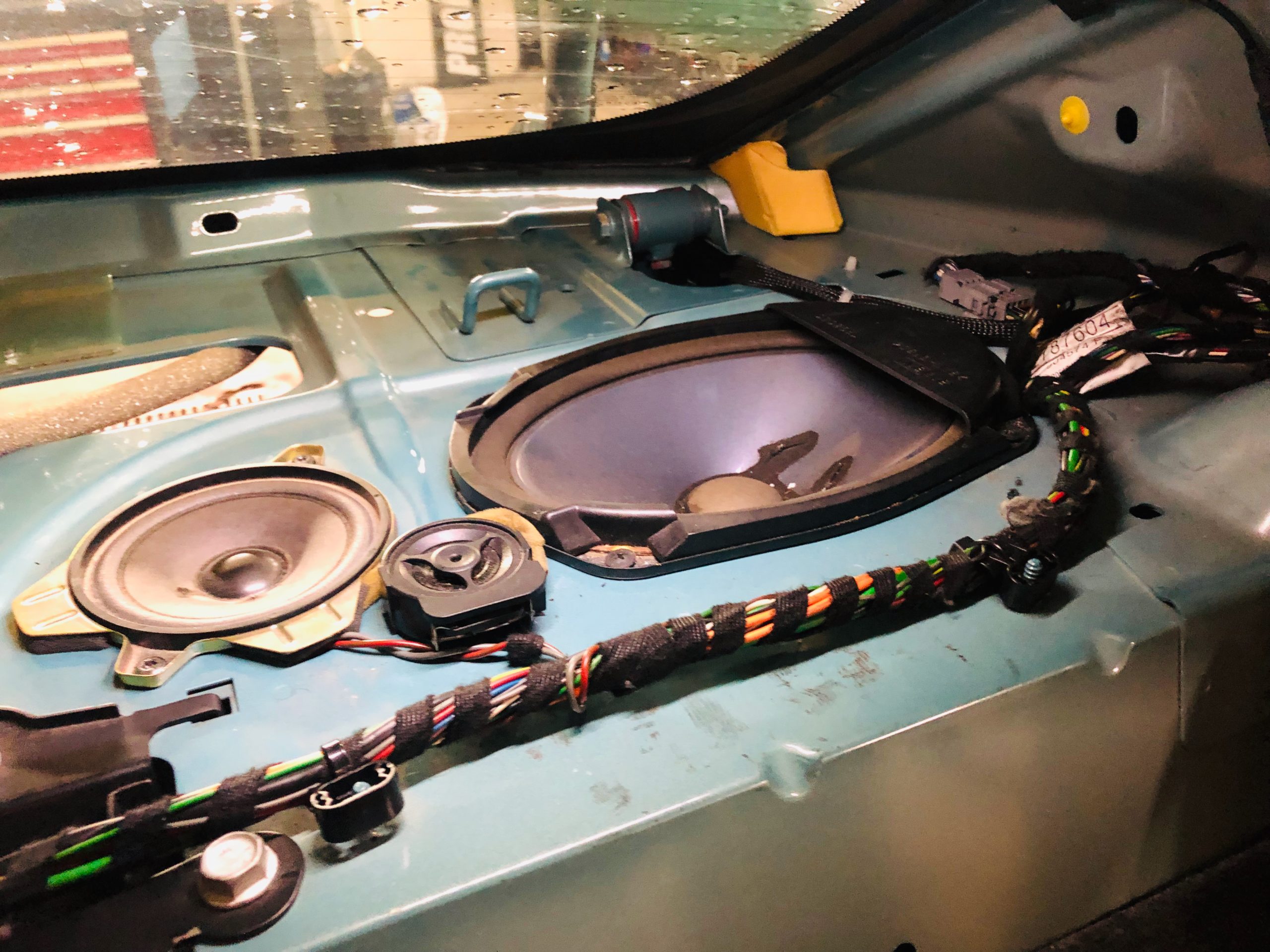 - montujemy dwa dodatkowe tweetery w deskę – zdejmujemy kratki (podważamy), wyciągamy fabryczne głośniki i tam przelotowo podłącza się tweeterki