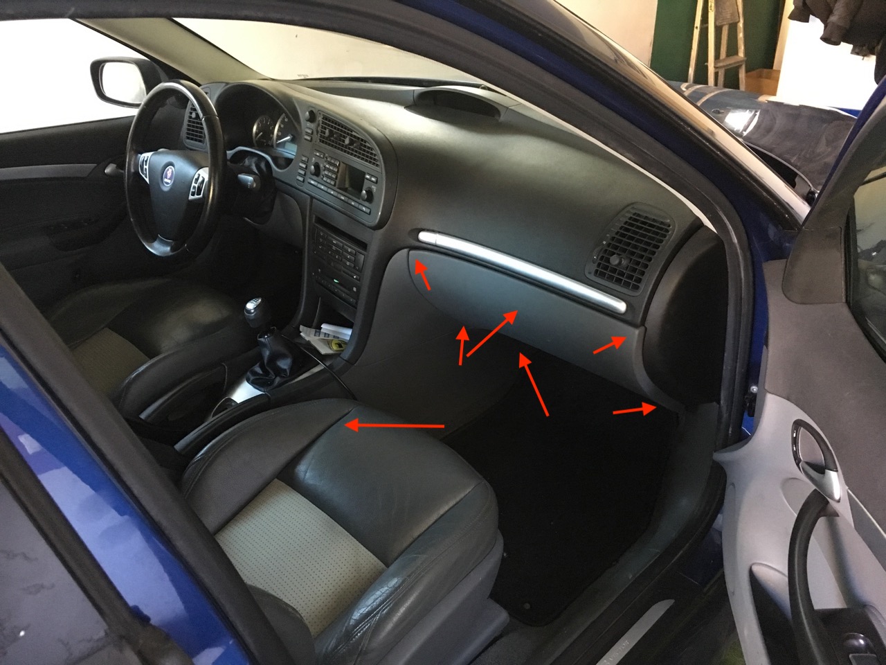- demontaż osłony pod schowkiem – jedna śrubka od dołu, jedna z boku (po to ściągaliśmy boczek tunelu)