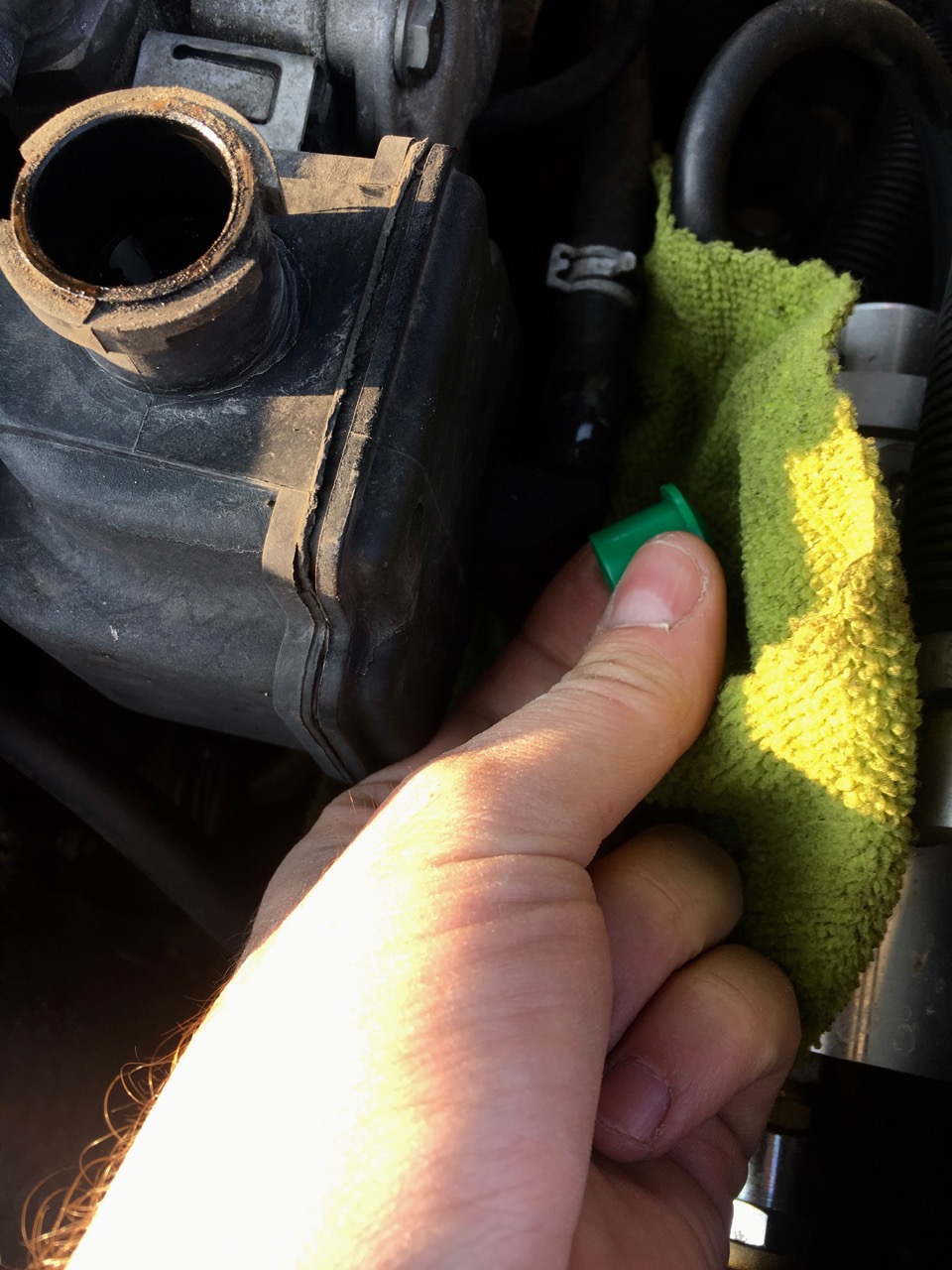 Porównajcie sobie kolor starego i nowego CHF, w tym przypadku jest to auto z autentycznym przebiegiem = 122tys km na dzień dzisiejszy, a co by było po 250tys? Jeśli chodzi o zaślepkę króćca – mam na półce taki koreczek, pasuje perfekt 🙂